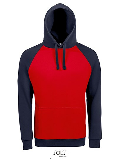Molton 280 Low Shrinkage Fabric; 80% Baumwolle Ringspun / 20% Polyester; Molton innen angeraut; Außenmaterial: 100% Baumwolle | 2-farbig | Raglan-Ärmel | Kängurutasche an der Vorderseite | Ripp an Bündchen und Saum | Gefütterte Kapuze, mit Kordel verstellbar | Nackenband | Kein Label