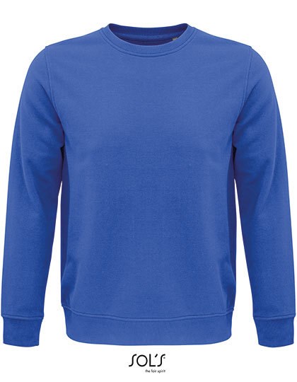 French Terry 280 | 80% Bio-Baumwolle / 20% recycelter Polyester | 3-Faden-Garn | Ungebürstet | Obermaterial und Ripp-Stoff: 100% Baumwolle | Bio-Sweatshirt aus Terry | Seitennaht | Halbmond im Nackenbereich | Fischgrätmuster-Nackenband | Eingesetzte Ärmel | 2 x 2 gerippte Ärmelabschlüsse, Kragen und Saum | Kein Label