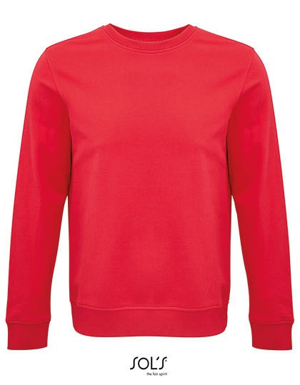 French Terry 280 | 80% Bio-Baumwolle / 20% recycelter Polyester | 3-Faden-Garn | Ungebürstet | Obermaterial und Ripp-Stoff: 100% Baumwolle | Bio-Sweatshirt aus Terry | Seitennaht | Halbmond im Nackenbereich | Fischgrätmuster-Nackenband | Eingesetzte Ärmel | 2 x 2 gerippte Ärmelabschlüsse, Kragen und Saum | Kein Label