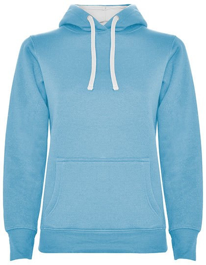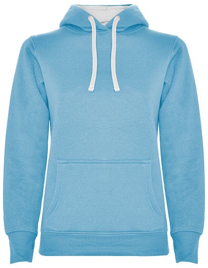 Innen angeraut | Tailliert | Kapuze innen (Single Jersey), Kordelzug und Metall-Ösen in Kontrastfarbe | Nackenband mit Fischgrätmuster | Kängurutasche | Ärmelbündchen und Saum mit 1x1 Ripp-Strick und Elasthan | Ärmelbündchen mit Daumenöffnung | Herausreißbares Label
