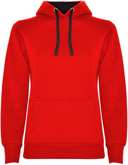 Innen angeraut | Tailliert | Kapuze innen (Single Jersey), Kordelzug und Metall-Ösen in Kontrastfarbe | Nackenband mit Fischgrätmuster | Kängurutasche | Ärmelbündchen und Saum mit 1x1 Ripp-Strick und Elasthan | Ärmelbündchen mit Daumenöffnung | Herausreißbares Label