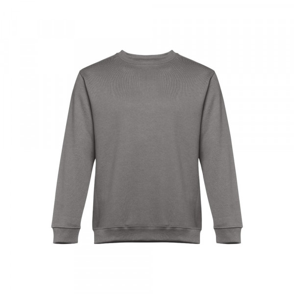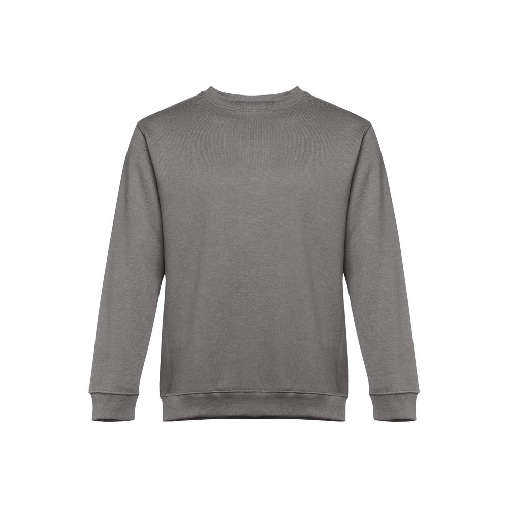 Sweatshirt aus 50% Baumwolle und 50% Polyester (300g/m²), unisex. Innen kardiert, 1x1 Ripp, Bund am Ärmel und Saum, Doppelnaht und Verstärkungsband am Kragen. Größen: S, M, L, XL, XXL