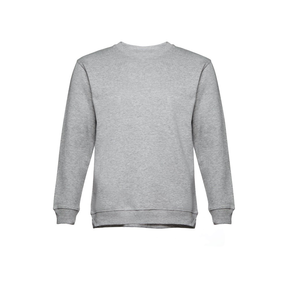 Sweatshirt aus 50% Baumwolle und 50% Polyester (300g/m²), unisex. Innen kardiert, 1x1 Ripp, Bund am Ärmel und Saum, Doppelnaht und Verstärkungsband am Kragen. Größen: S, M, L, XL, XXL