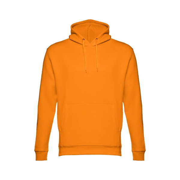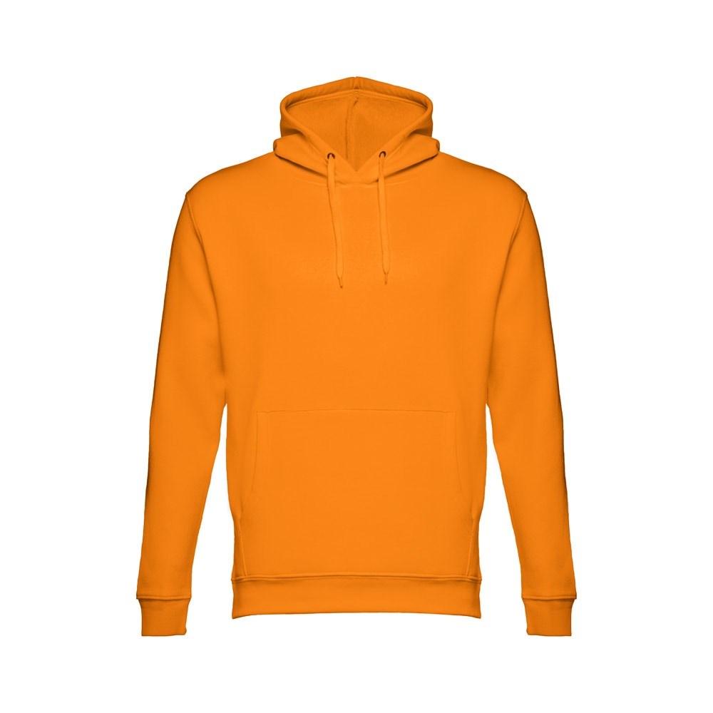 Sweatshirt aus 50% Baumwolle und 50% Polyester (320g/m²), unisex mit einer Kapuze mit Kordelzug. Innen kardiert, 1x1 Ripp, Bund an Ärmel und einer Kängurutasche. Größen: XS, S, M, L, XL, XXL