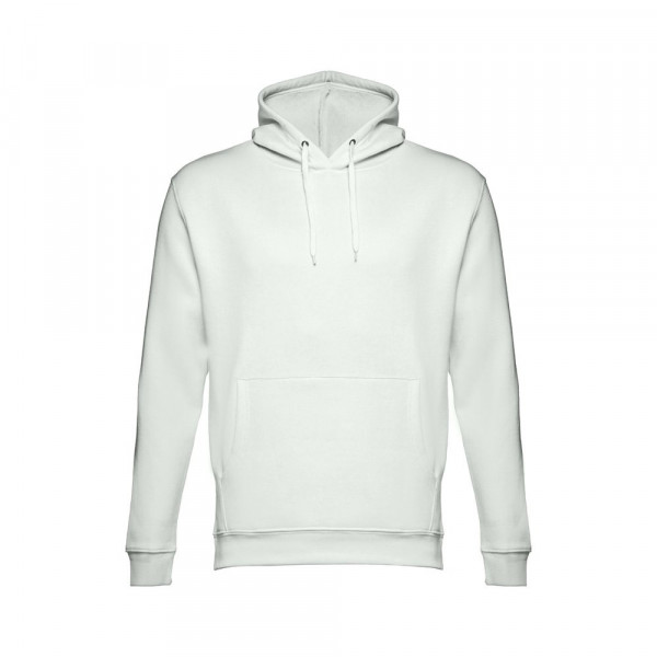 Sweatshirt aus 50% Baumwolle und 50% Polyester (320g/m²), unisex mit einer Kapuze mit Kordelzug. Innen kardiert, 1x1 Ripp, Bund an Ärmel und einer Kängurutasche. Größen: XS, S, M, L, XL, XXL