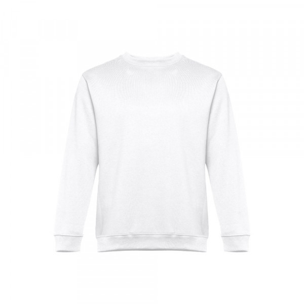 Sweatshirt aus 50% Baumwolle und 50% Polyester (300g/m²), unisex. Innen kardiert, 1x1 Ripp, Bund am Ärmel und Saum, Doppelnaht und einem Verstärkungsband am Kragen. Größen: S, M, L, XL, XXL