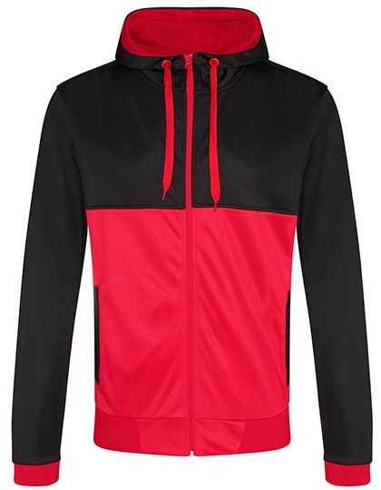 Moderne Kontrastpaspelierung – obere Passe, Ärmel und Kapuze in einer Farbe und untere Hälfte von Hauptteil, Ärmelbündchen, Saum, Kordelzügen und Kapuzenmesh in Kontrastfarbe | Lockere, sportliche Passform | Maximaler Druckbereich vorn und hinten | Mesh-gefütterte Kapuze mit Kordelzügen | Eingesetzte Ärmel | Gerippter Saum und Ärmelbündchen | Reißverschluss vorne mittig | Vordertaschen mit farblich abgesetzter Einfassung | Leicht heraustrennbares Etikett zum einfachen Umlabeln