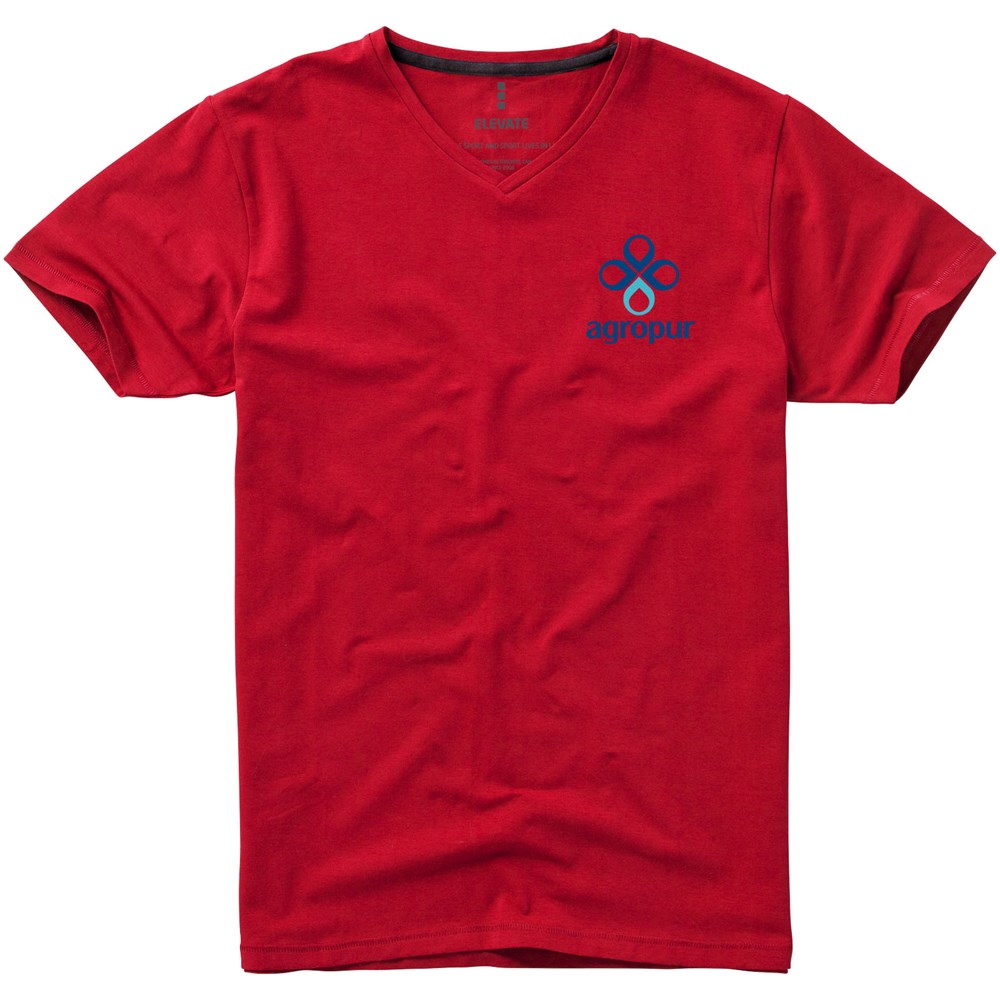 Nachhaltige Promotionbekleidung. Stoff Einfassung am Kragen. V-Ausschnitt. Stetch-Material. Rückstich Details. Zweifarbiges Schulter zu Schulter Nackenband. Transfer Hauptlabel für den etikettfreien Komfort.