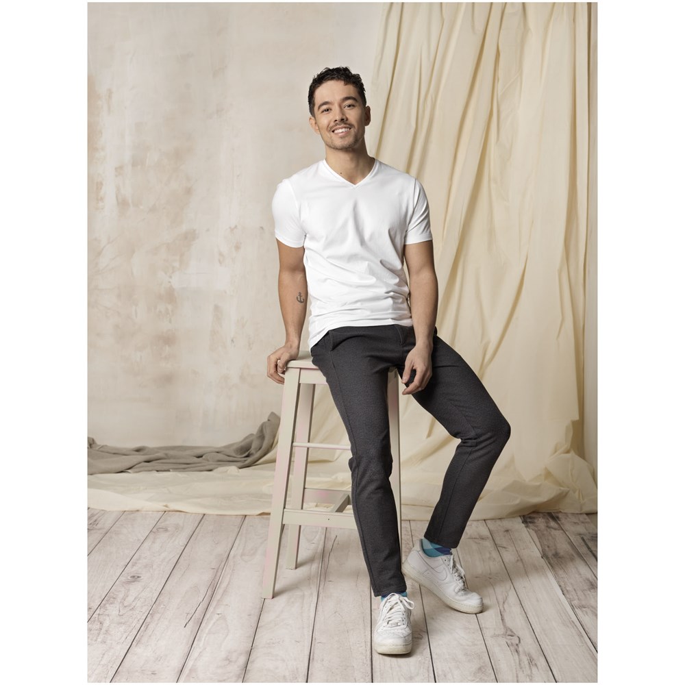 Nachhaltige Promotionbekleidung. Stoff Einfassung am Kragen. V-Ausschnitt. Stetch-Material. Rückstich Details. Zweifarbiges Schulter zu Schulter Nackenband. Transfer Hauptlabel für den etikettfreien Komfort.