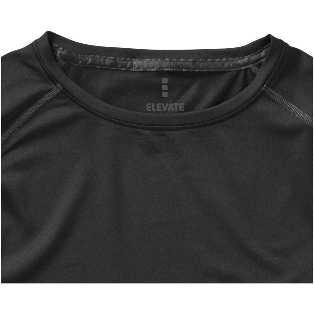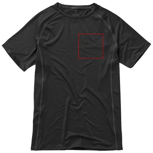 Stoff Einfassung am Kragen. Rundhalsausschnitt. Raglan Ärmel. Stetch-Material. Dünne Flatlock-Naht Details. Satin Nackenband. Doppelnaht an Kragen und Saum. Reflektierende Details. Transfer Hauptlabel für den etikettfreien Komfort..