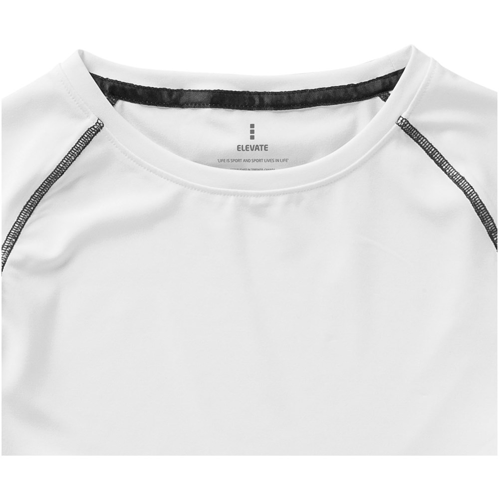Stoff Einfassung am Kragen. Rundhalsausschnitt. Raglan Ärmel. Stetch-Material. Dünne Flatlock-Naht Details. Satin Nackenband. Transfer Hauptlabel für den etikettfreien Komfort.. Reflektierende Details. Doppelnaht an Kragen und Saum.