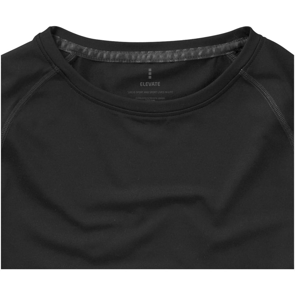 Stoff Einfassung am Kragen. Rundhalsausschnitt. Raglan Ärmel. Stetch-Material. Dünne Flatlock-Naht Details. Satin Nackenband. Transfer Hauptlabel für den etikettfreien Komfort.. Reflektierende Details. Doppelnaht an Kragen und Saum.