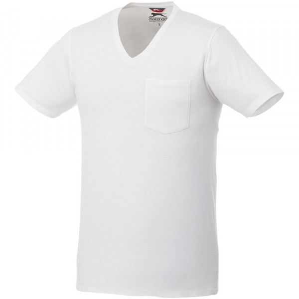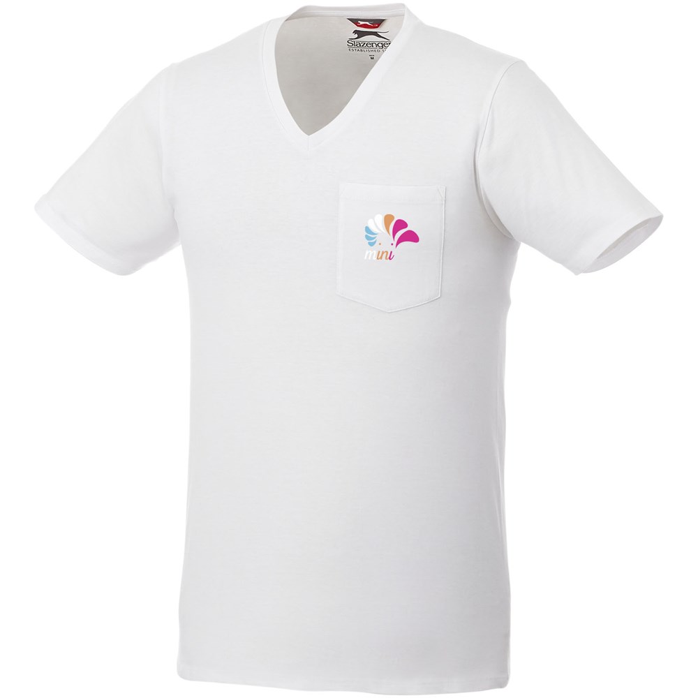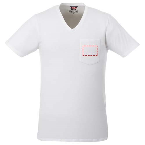 Schlauchware. V-Ausschnitt. Brusttasche. Schulter zu Schulter Nackenband. Doppelnaht an Kragen und Saum. Kontrastfarbene Aufhängeschlaufe. Transfer Hauptlabel für den etikettfreien Komfort..