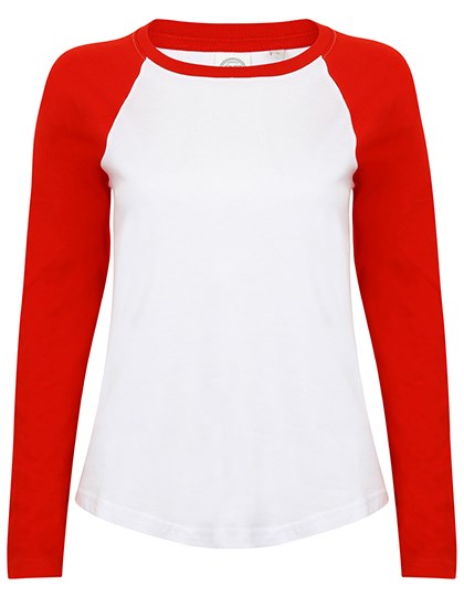 Kontrastfarbene Raglan-Ärmel und Ripp-Rundhalsausschnitt mit Nackenband | Langer Schnitt mit geformten Seitennähten | Runder Saum mit Doppelnaht | Entfernbares SF (Skinnifit) Label