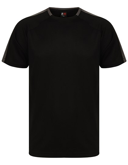 Single-Jersey | Unisex | Eigenmaterial-Ärmeleinsätze in Kontrastfarbe | Sportliche Passform | Die ableitende Oberfläche sorgt für Feuchtigkeitsregulierung | Schnell trocknend und atmungsaktiv | 2-teiliger Eigenmaterial-Kragen | Raglan-Schulter | Abreißetikett