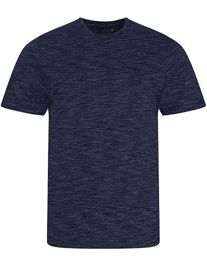 Moderner und stylisher Schnitt mit Seitennähten | Kurzärmelig | Größenetikett nur für einfaches Rebranding | Meliertes Garn | Weiches Material | Oberfläche ideal für Drucke oder Verzierungen | Nackenband | Gerippter Rundhalsausschnitt | Doppelnähte an Ärmeln und unterem Saum | Worldwide Responsible Accredited Production (WRAP)-zertifizierte Produktion