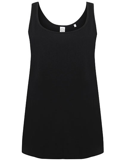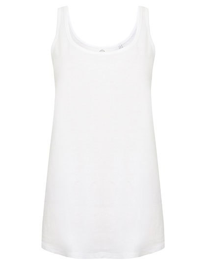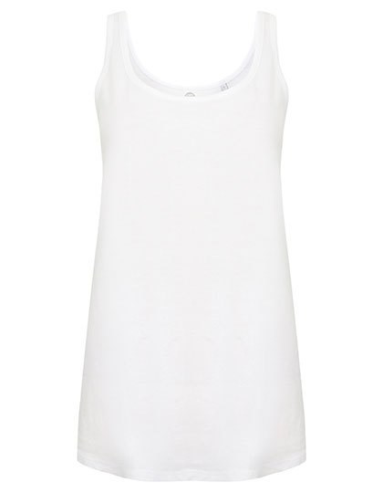 Abreißetikett | Legere Passform | Abgesteppte Einfassung an Hals und Armlöchern aus gleichem Material | U-Ausschnitt und tiefer Rückenausschnitt | Abgerundeter Saum mit etwas länger geschnittenem Rückenteil