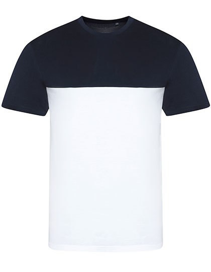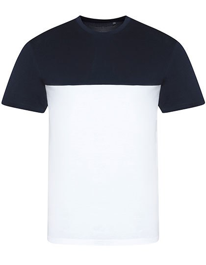 Gekämmte, ringgesponnene Baumwolle | Moderne Passform mit Kontrastblenden | Kurze Ärmel | Nur Größenetikett für einfaches Rebranding – Schwarz mit Farbcodierung für Unisex | Oberfläche für Druck oder Stickerei geeignet | Nackenband | Gerippter Rundhalsausschnitt | Ärmel und unterer Saum mit Zwillingsnadelstich-Detail | Seitennähte