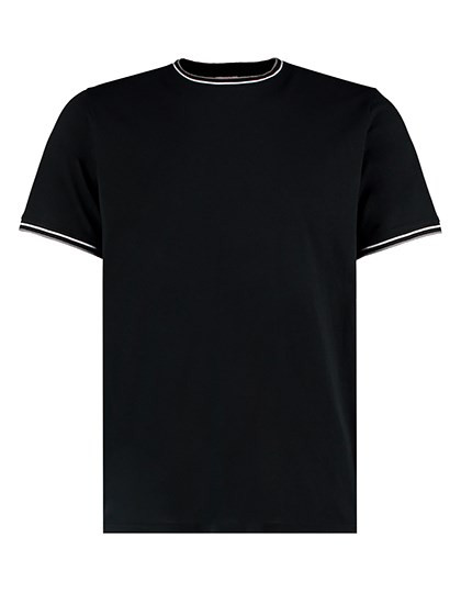 Umgeschlagener, 1x1 gerippter Kragen und Ärmelbündchen in Kontrastfarbe abgesetzt | Halseinfassung aus dem gleichen Stoff wie Hauptstoff | Abgesteppter, vorderer Halsbesatz | Saum mit Zwillingsnadelstich | Kustom Kit® – Abreißetikett am Nacken