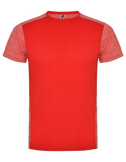 Vorderseite: 100% bird's eye Polyester, Rückseite: 100% Polyester Space Dye, 135 g/m² | Funktions-T-Shirt, kurzarm | Rundhals | Kombination von zwei Polyestergeweben an Rücken, Schultern und Ärmeln | Schnitt mit verlängertem Rücken | Schnell trocknendes, atmungsaktives Gewebe | Herausreißbares Label | Funktionsmaterial