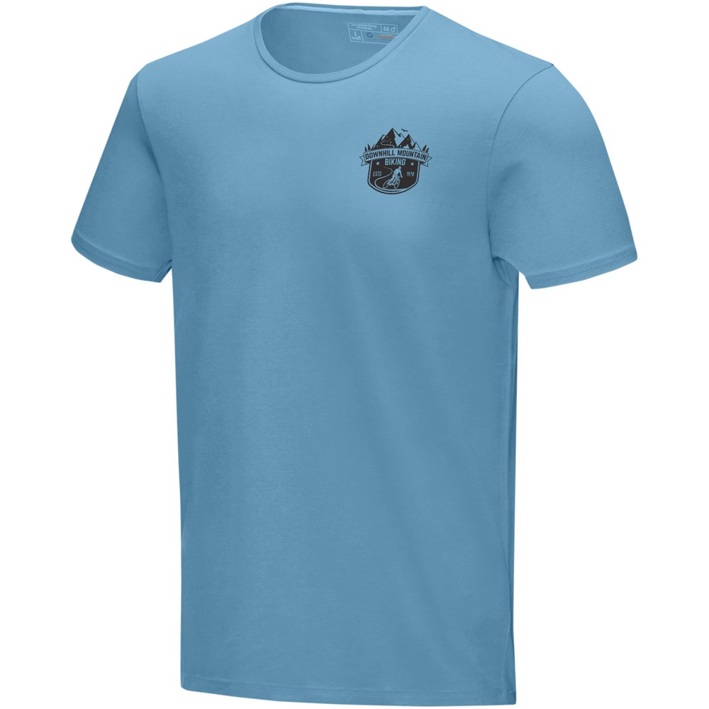 Nachhaltige Promotionbekleidung. Stoff Einfassung am Kragen. Rundhalsausschnitt. Stetch-Material. Doppelnaht an Kragen und Saum. Zweifarbiges Schulter zu Schulter Nackenband. Transfer Hauptlabel für den etikettfreien Komfort.