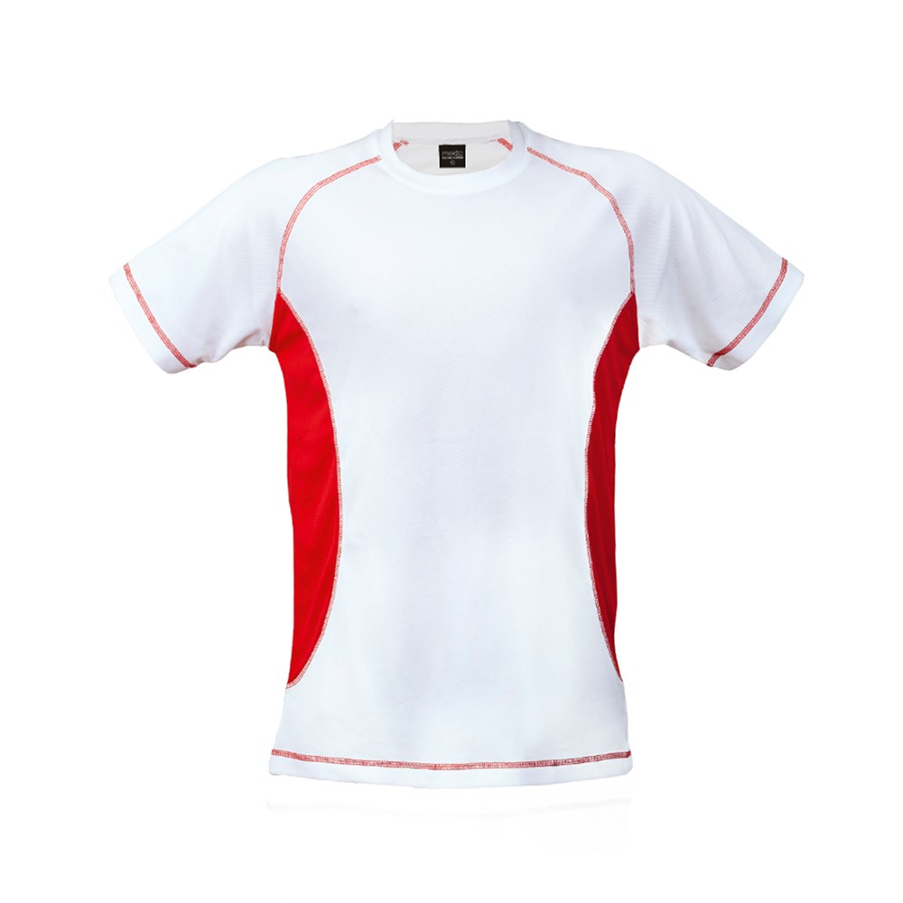 Funktions-T-Shirt für Erwachsene aus 100% atmungsaktivem Polyester (135 g/m2). Design in Weiß mit Verstärkungsnähten und Seiten in kräftigen Farben. Erhältlich in den Größen S, M, L, XL und XXL.