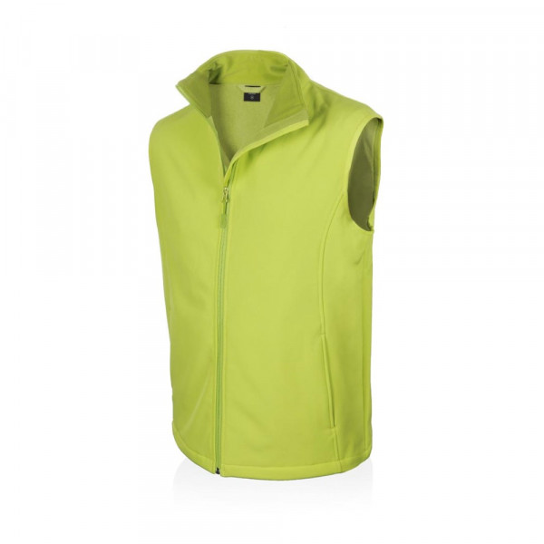 Wasserabweisende und atmungsaktive Weste aus einer Soft-Shell/Elasthan-Kombination. Mit Reißverschluss und Fronttaschen. Verfügbar in verschiedenen lebendigen Farben und den Größen S, M, L, XL und XXL.