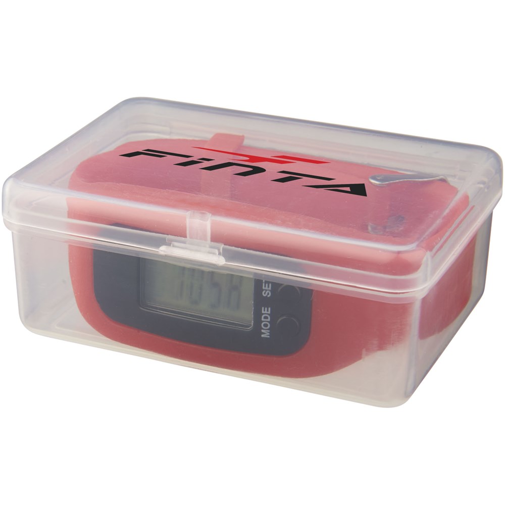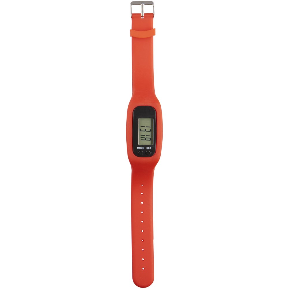 Silikon-Smart-Uhr mit Metallschnalle, Druckknöpfen, um Einstellungen zu ändern und 5-stelliger LED-Anzeige mit Zeit, Schrittzahl und verbrannten Kalorien. Geeignet für metrische Systemeinstellungen. Kommt in einem transparenten Kunststoff-Gehäuse für einfache bequeme Lagerung und Dekoration. Mit Batterien.