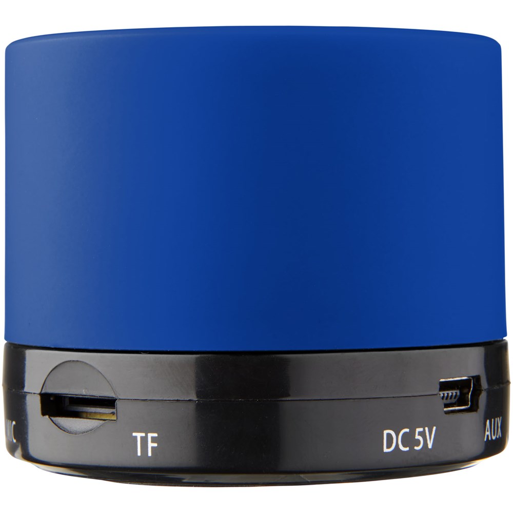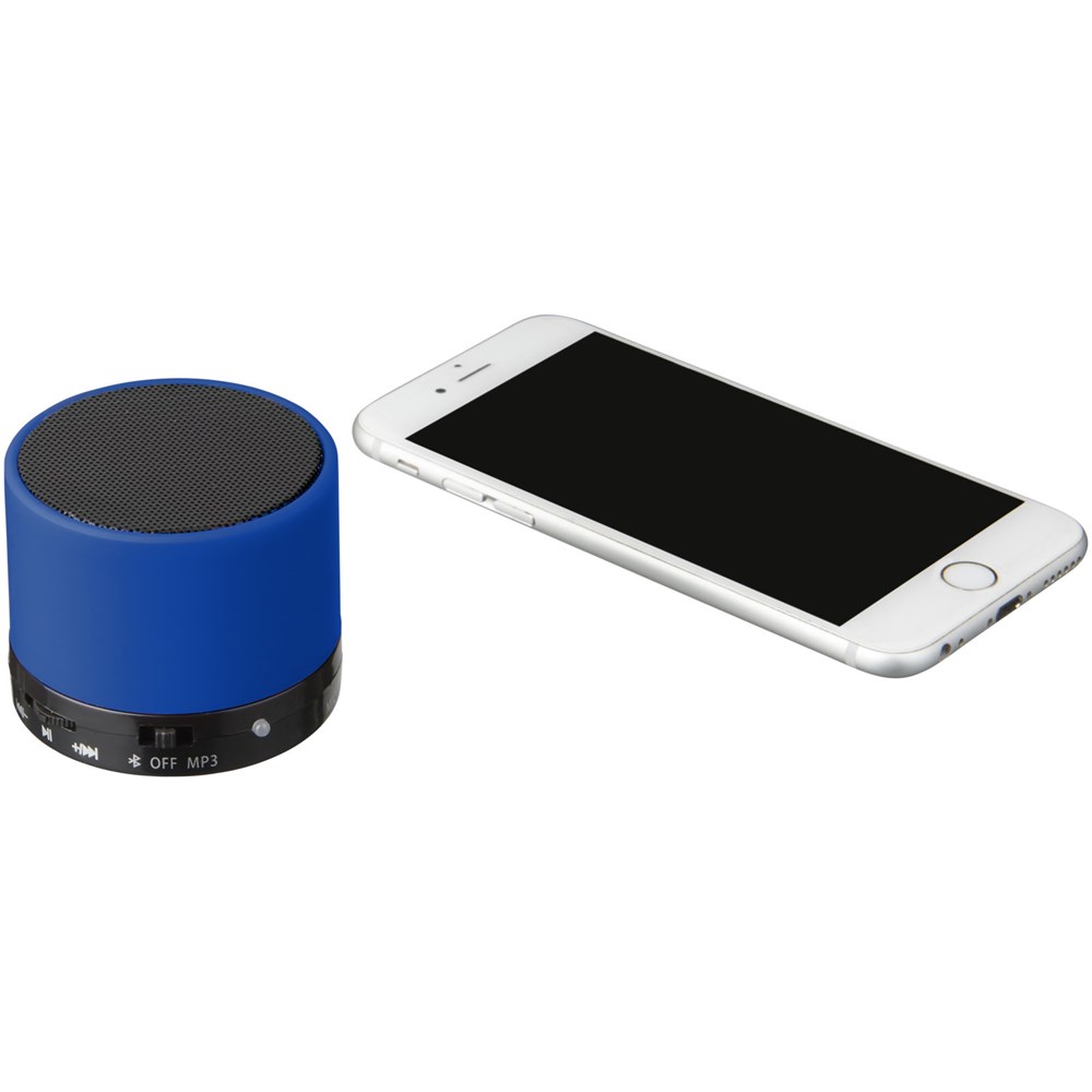 Gummizylinder-Lautsprecher. Genießen Sie Musik und Filme überall, indem Sie Ihr Bluetooth®-kompatibles Gerät wie iPhone, iPad oder Android-OS-Geräte mit diesem tragbaren Bluetooth®-Lautsprecher (10 m Reichweite) verbinden. Der Lautsprecher erlaubt Ihnen mit dem eingebauten Mikrofon eine Telefonkonferenz unterwegs über Ihr Smartphone oder per Video-Chat-Programme wie Skype, zu halten. Kommt in einer schönen gummierten Ausführung. Ein USB-Netzteil ist enthalten.
