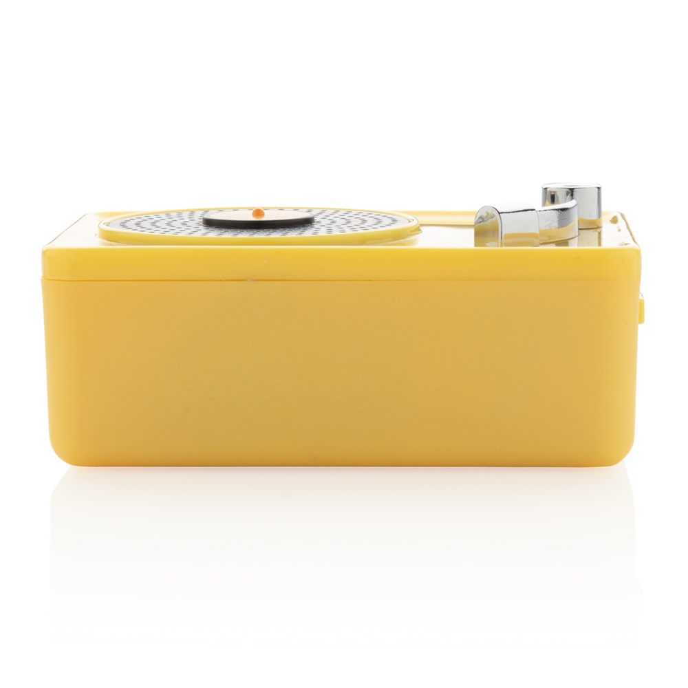 Trendiger kabelloser 3W Lautsprecher aus ABS im Vintage Look-and-Feel. Klarer Sound mit BT 5.0 für eine stabile Verbindung auf bis zu 10m. Die 350 mAh Batterie spielt Ihre Lieblingsmusik bis zu 3h und ist innerhalb von 2h wieder voll geladen. Verpackt in einer Geschenkbox im Vintage-Design. Mit Mikrofon um auch Telefonate führen zu können.