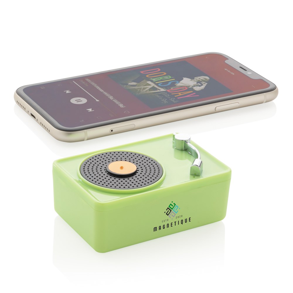 Trendiger kabelloser 3W Lautsprecher aus ABS im Vintage Look-and-Feel. Klarer Sound mit BT 5.0 für eine stabile Verbindung auf bis zu 10m. Die 350 mAh Batterie spielt Ihre Lieblingsmusik bis zu 3h und ist innerhalb von 2h wieder voll geladen. Verpackt in einer Geschenkbox im Vintage-Design. Mit Mikrofon um auch Telefonate führen zu können.