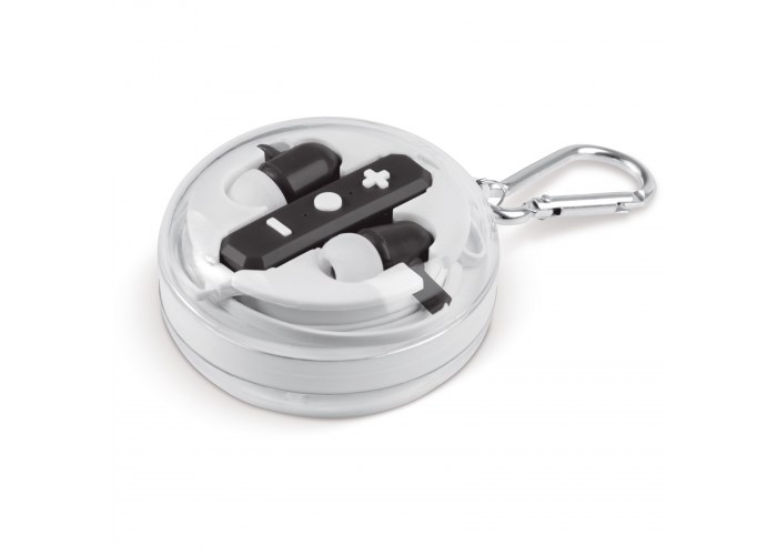 Kabellose In-Ear Kopfhörer mit 2 Stunden Akkulaufzeit in einer runden Box. Die Kopfhörer sind mit einem Akku ausgestattet. Ideal zum Laufen, Radfahren und für andere Sportarten. Mit einer integrierten Fernbedienung und ein Mikrofon für die einfache Kontrolle über Musik, Lautstärke und Anrufe.