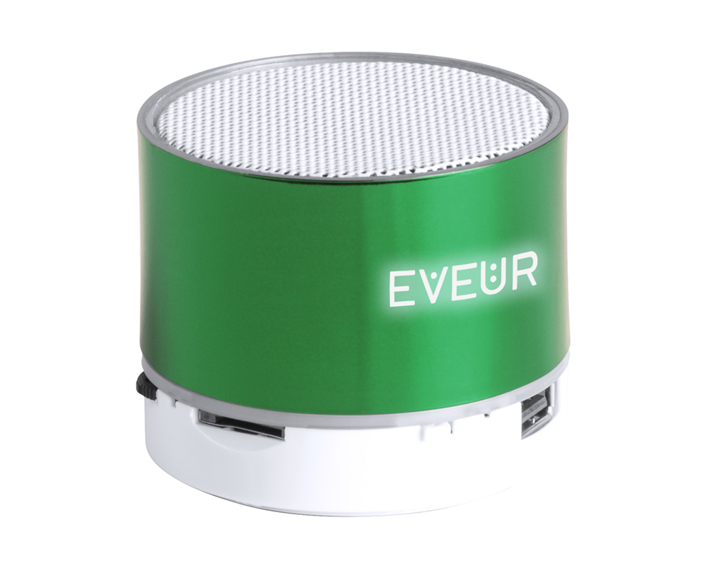 Bluetooth-Lautsprecher mit Kunststoff-Gehäuse, Freisprechfunktion, FM-Radio, Mikro-SD-Kartenleser und einer LED-Lampe im Gehäuse für eine unterleuchtete Gravur. Inkl. USB-Ladekabel.