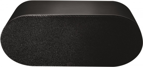 Zeitloser Bluetooth Speaker in elegantem Design. Die Lautsprecherabdeckung ist aus Stoff, das Gehäuse fasst sich durch eine Softtouch-Beschichtung gut an. Leistung: 3 W Bluetooth: V2.1+DER Batteriekapazität: 300mAh Material: ABS und Textil Farbe: Schwarz Einzelverpackung Maße: 148 x 62 x 47 mm Gewicht: 211 g Werbeanbringung: Oben auf dem Rahmen, 40 x 20 mm (D2/UV2/GP) Druck in 1c weiss oder silbern Modisch, ansprechend und 100% klimaneutral