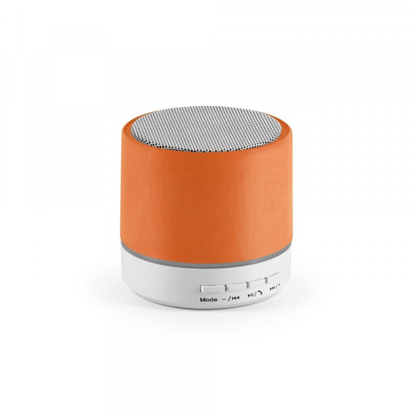 Bluetooth Lautsprecher aus ABS mit Mikrofon und rutschfestem Unterboden. Dieser Lautsprecher hat eine Wiedergabedauer bis zu 2 Stunden und eine Ausgangsleistung von 3W/4Ω, auch ein TF Kartenleser ermöglicht die Vielfalt an Musik. Zu den Funktionen gehören: Anrufannahme, Lautstärkeregelung und Verbindung zur Playlist des Mobilgerätes. Inklusive USB/Micro USB Ladekabel. ø59 x 55 mm