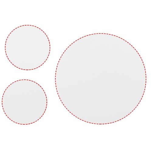 Besteht aus einem Q-Mat® Mousepad und einem Set aus zwei passenden Untersetzern versehen mit Ihrem Firmendesign. Das Set besteht aus einem runden Mousepad (0,3 x ø 20 cm) und zwei runden Untersetzern (0,3 x ø 9,8 cm).