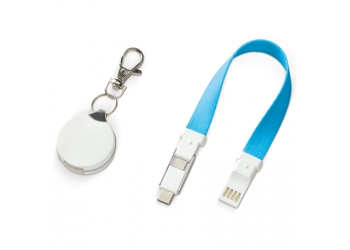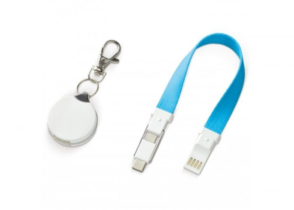 Schlüsselanhänger mit integriertem Ladekabel. Verbinden Sie über den USB-Anschluss Ihr Notebook oder ein Ladegerät um weitere Endgeräte aufzuladen.
