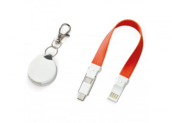 Schlüsselanhänger mit integriertem Ladekabel. Verbinden Sie über den USB-Anschluss Ihr Notebook oder ein Ladegerät um weitere Endgeräte aufzuladen.