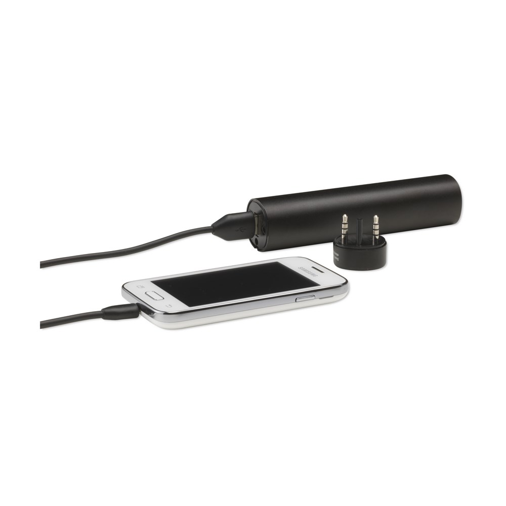 Praktischer Powerbank mit zweifacher Funktion: Notfall-Ladegerät mit integrierter Lithiumbatterie (3500mAh/3.7V). Der PowerSound kann per USB mit einem USB-Kabel aufgeladen werden. Eignet sich für die gängigsten Mobilgeräte (mit 3,5 mm Jack Anschluß). Input: 5V-1A. Output: 5V-1A. Lautsprecher mit perfektem Sound. Kompatibel mit den gängigsten Mobilgeräten. Mit USB/ Audiokabel mit Standardstecker 3,5mm und Micro-USB-Anschluss. Inklusive Gebrauchsanweisung. Der 2-in1- Powerbank entspricht den europäischen Richtlinien. Wenn Sie das Ladevermögen der Powerbank (mAh) durch die Akkukapazität Ihres Mobilgerätes (mAh) teilt, erhalten Sie die ungefähre Akkulade-Prozentanzahl bzw. die mögliche Anzahl an Ladungen. Pro Stück in einer Verpackung.