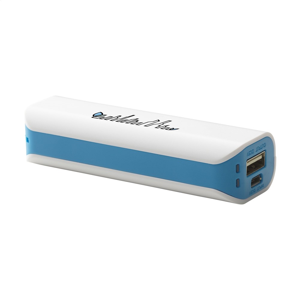 ABS-Powerbank mit integrierter Lithium-Ionen-Batterie (2200 mAh/3,7 V). Eingang: 5 V - 800 mA Ausgang: 5 V - 1 A. Die Powerbank kann mit dem gelieferten USB-Kabel über USB aufgeladen werden. Geeignet für die meisten mobilen Geräte. Einschl. Anweisungen.
