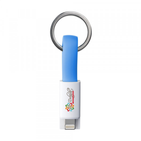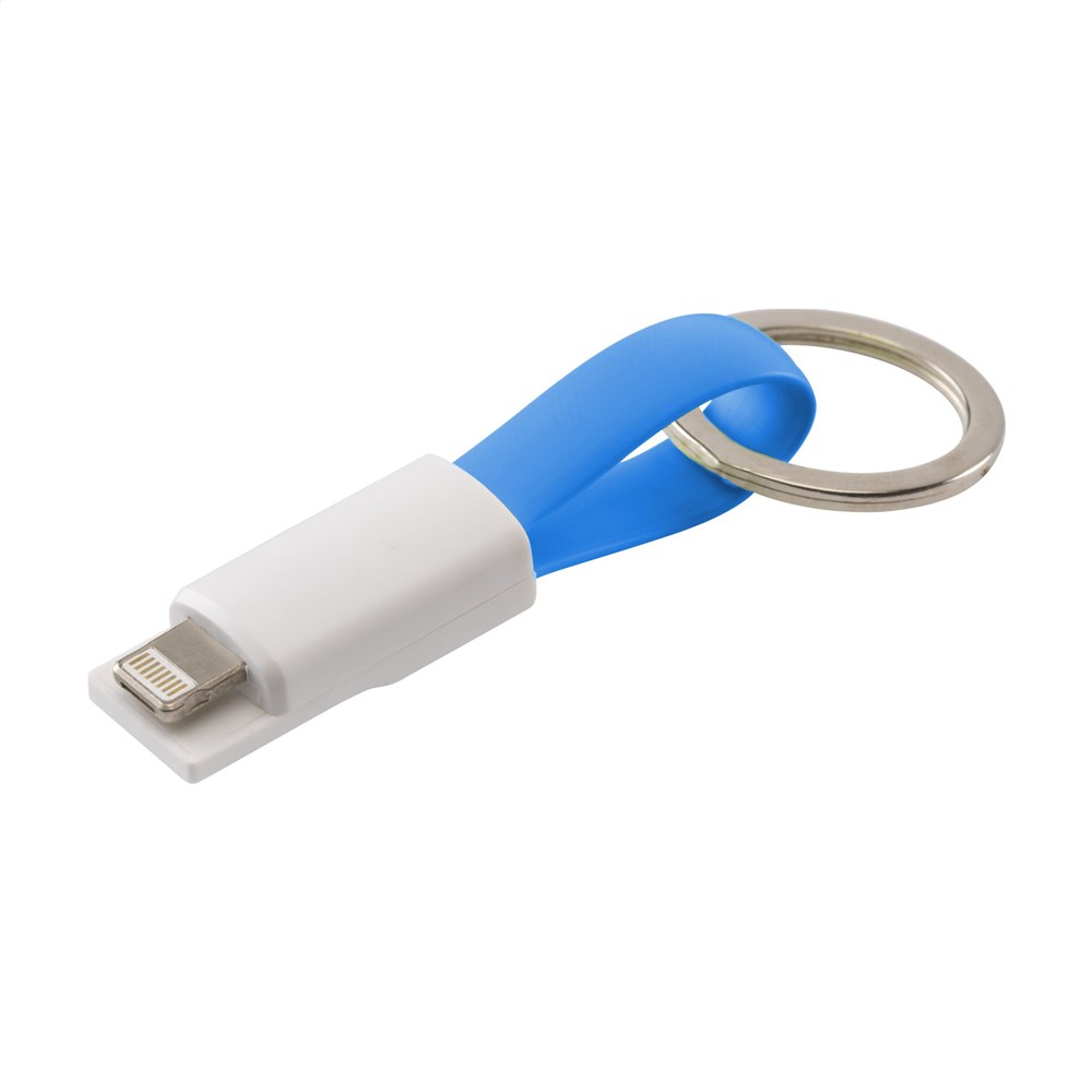 2-in-1 (iOS und Micro USB) USB-Ladeanschluss mit Metall-Schlüsselanhänger für Ihren Schlüsselbund. Ideal für unterwegs. Material: ABS + TPE.