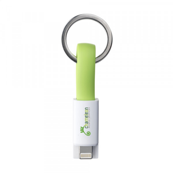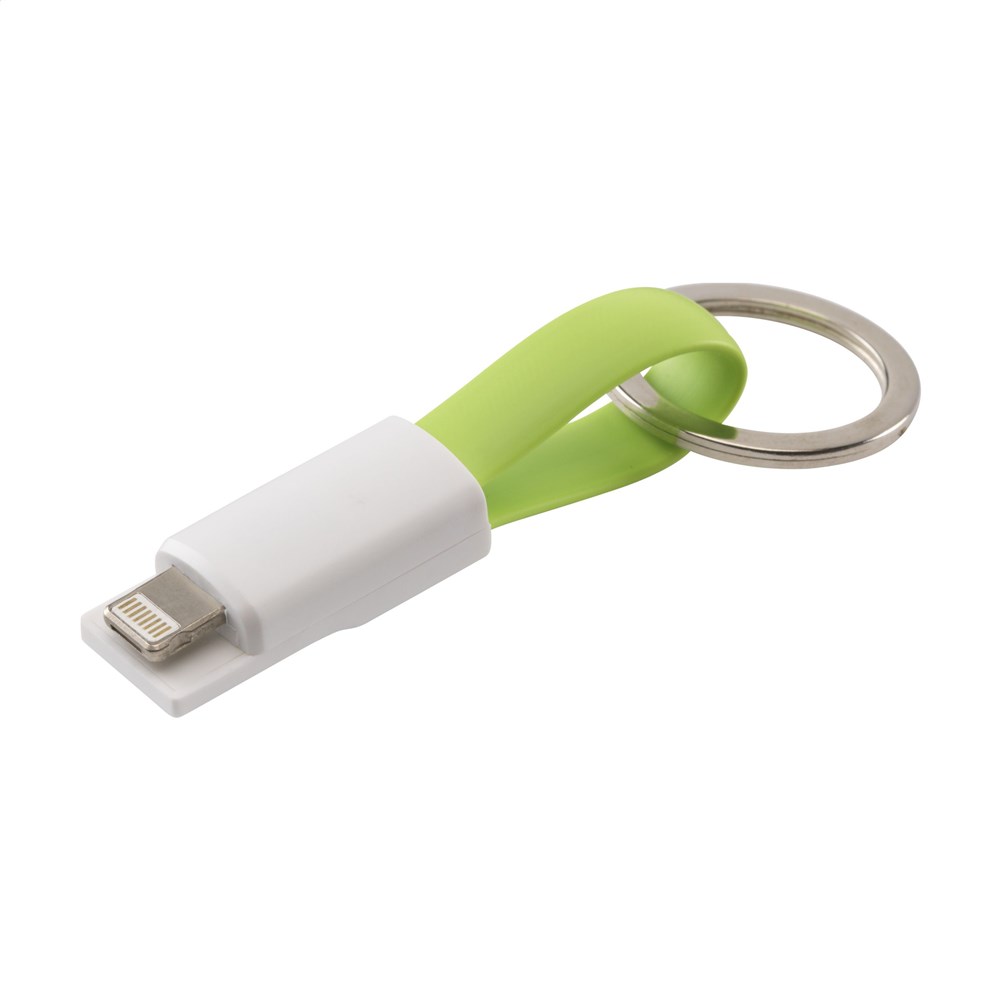 2-in-1 (iOS und Micro USB) USB-Ladeanschluss mit Metall-Schlüsselanhänger für Ihren Schlüsselbund. Ideal für unterwegs. Material: ABS + TPE.