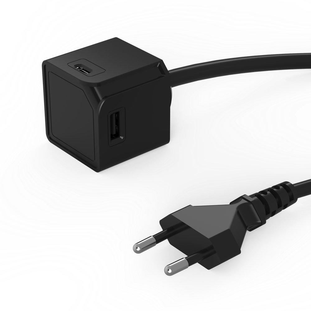 Verschiedene Modelle sind verfügbar, um die Bedürfnisse der Benutzer zu erfüllen. Wählen Sie zwischen dem USB Cube Extended USB A + C mit 2 USB-A-Anschlüssen und 2 USB-C-Anschlüssen und einem 1,5 m langen Stromkabel, dem USB Cube Original A + C mit 2 USB-A-Anschlüssen und 2 USB-C-Anschlüsse oder der USB Cube Original A.
