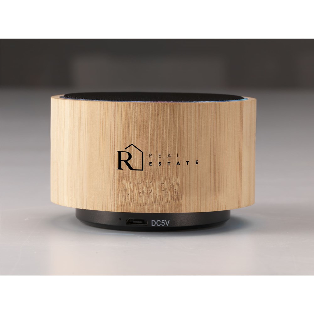 ÖKO Bluetooth 3W-Funklautsprecher mit integriertem Stimmungslicht. Das Lautsprechergehäuse besteht aus natürlichem Bambus. Mit einer Leistung von 3 W erzeugt der Lautsprecher einen kristallklaren Klang. Der eingebaute wiederaufladbare 300-mAh-Lithium-Akku garantiert nach dem Aufladen eine Spielzeit von bis zu 3 Stunden. Kabellose Reichweite bis zu 10 Meter. Einfach zu bedienen und mit den meisten gängigen Smartphones und Tablets kompatibel. Eingang: DC5V. Ausgang: 3,7V/3W. Inklusive Mikro-USB-Ladekabel und Gebrauchsanweisung. Wird einzeln in einem Kraftkarton geliefert.