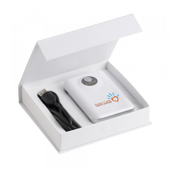 Leistungsstarkes Notladegerät aus Kunststoff in Metallik-Optik mit aufleuchtendem Batterie-Stand-Indikator, Taschenlampenfunktion, 2 Anschlüssen für gleichzeitiges Aufladen und integrierter Lithiumbatterie (6600mAh/3.7V). Input: 5V-1A. Output: Port 1: 5V-1A. Port 2: 5V-2.1A. Die Powerbank kann mit einem USB-Kabel aufgeladen werden. Für die gängisten Mobilgeräte (z.B. Smartphones, MP3-Player und Tablets) geeignet. Inkl. Gebrauchsanweisung. Dividiert man das Ladevermögen der Powerbank (mAh) durch die Akkukapazität Ihres Mobilgeräts (mAh) erhalten Sie die ungefähre Akkulade-Prozentanzahl bzw. die mögliche Anzahl an Ladungen. Pro Set in einer Verpackung mit Magnetverschluss.