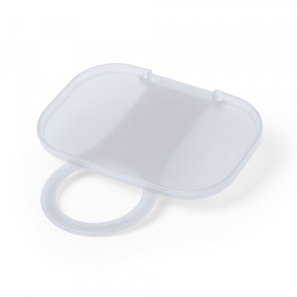 Origineller Smartphone-Klappständer für die Befestigung an der Wandsteckdose. Körper in halbtransparenter Ausführung, speziell entwickelt für den Tampondruck.