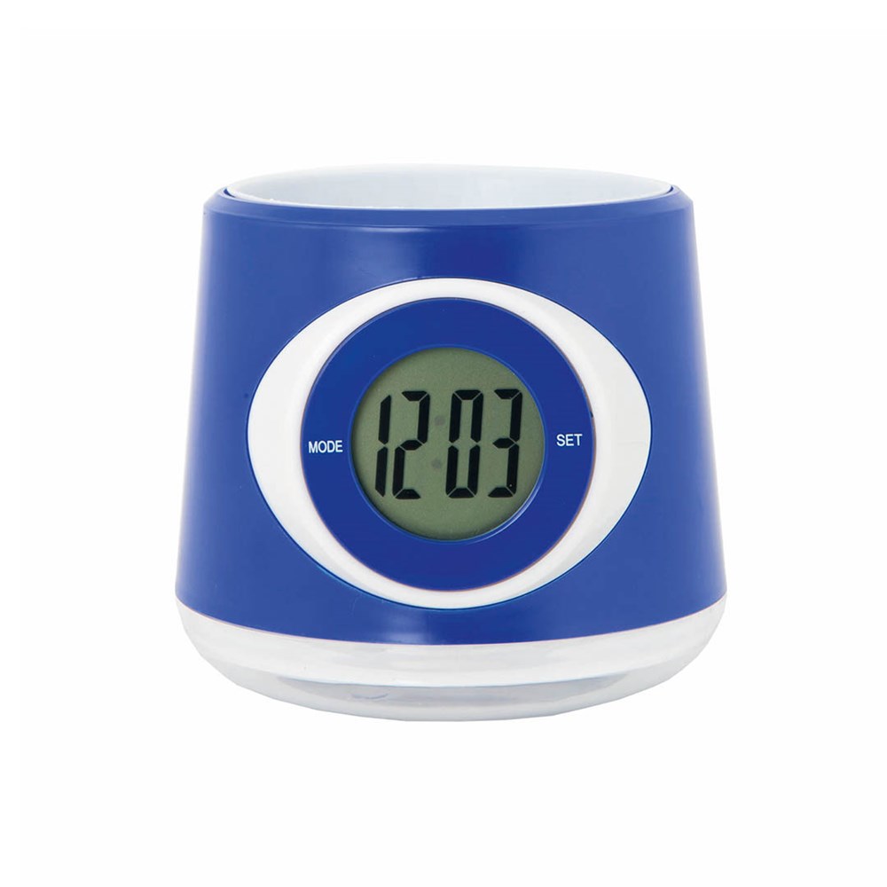Digitale Tischuhr mit integriertem Blumentopf und originellem zweifarbigem Design. Knopfzellen mit Schutzfolie inklusive. Präsentiert in einer individuellen Box.