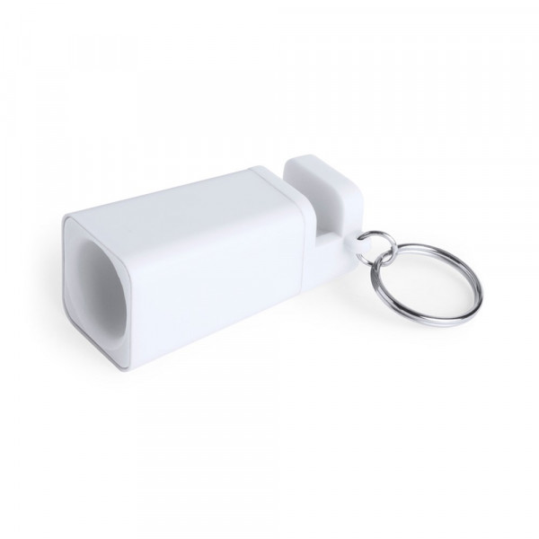 Schlüsselanhänger mit Smartphone-Ständer und manuellem Lautsprecher mit minimalistischem, zweifarbigem Design - speziell entwickelt für den Tampondruck.