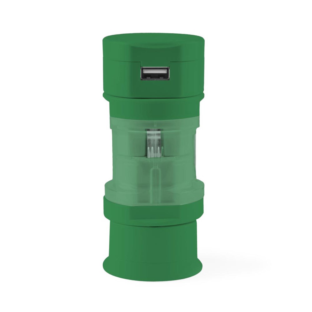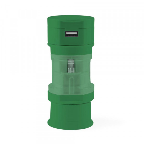 Adapter mit USB-Ausgang und kompakten Design in coolen Farben. Mit 1.000 mAh Ladekapazität. Besonders für Personen, die viel reisen, geeignet. Bietet Adapter für die USA, Europa, Asien und Großbritannien. Präsentiert in einer individuellen Box.