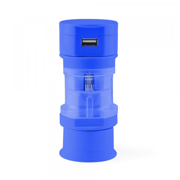 Adapter mit USB-Ausgang und kompakten Design in coolen Farben. Mit 1.000 mAh Ladekapazität. Besonders für Personen, die viel reisen, geeignet. Bietet Adapter für die USA, Europa, Asien und Großbritannien. Präsentiert in einer individuellen Box.